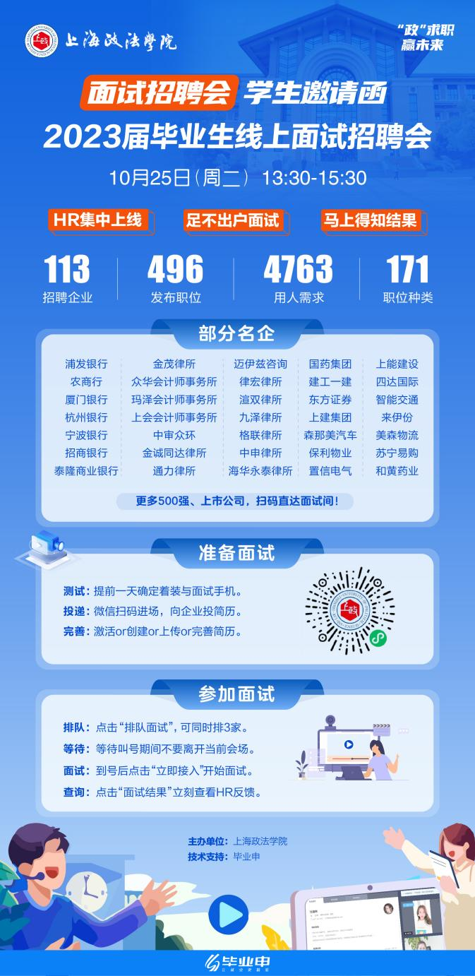 本次招聘会吸引了113家用人单位,其中不乏知名律师事务所、会计师事务所、世界五百强和大型国企,为我校毕业生提供了498个用人岗位,我校1283名毕业生参与招聘会。