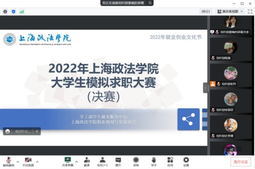 为贯彻落实教育部和市教委相关文件精神,进一步推动高校毕业生就业工作的深入开展,由上海政法学院学生工作部学生就业服务中心主办,上海政法学院职业规划与发展协会承办的2022年大学生模拟求职大赛于2022年10月-11月举办,11月8日大赛决赛圆满落幕。
