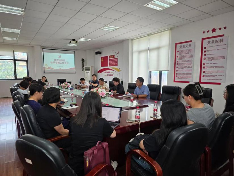 9月23日上午,经济法学院2025年秋季学期工作会议在B1-201会议室召开。学院领导班子成员、全体教职工参加会议。会议由经济法学院院长胡戎恩主持。