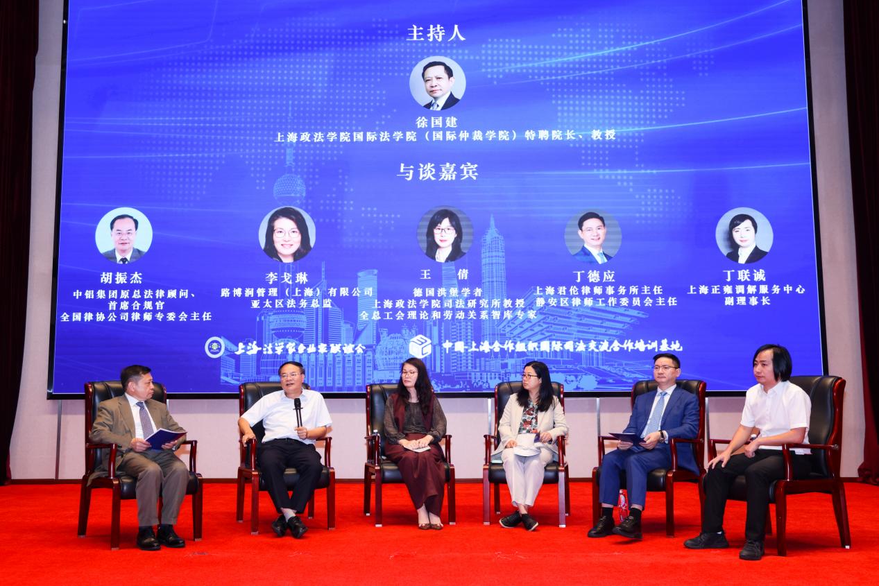 议题一由上海政法学院国际法学院(国际仲裁学院)特聘院长、教授徐国建主持。中铝集团原总法律顾问、首席合规官、全国律协公司律师专委会主任胡振杰,路博润管理(上海)有限公司亚太区法务总监李戈琳,德国洪堡学者、上海政法学院司法研究所教授、全国总工会理论和劳动关系智库专家王倩,上海君伦律师事务所主任、静安区律师工作委员会主任丁德应,上海正雍调解服务中心副理事长丁联诚从不同角度探讨了企业出海风险问题的防范与解决。企业出海是非常专业化的问题,企业不仅是“走出去”,更是“走进去”,应充分了解当地的法律及风俗习惯,争做“本地企业”。