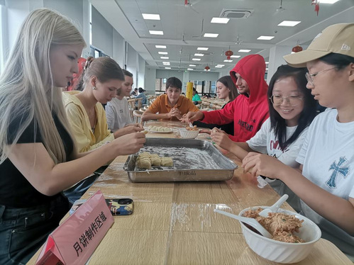本次活动特别邀请了留学生代表参与,为他们提供了一个深入了解中国传统节日文化的窗口。留学生们对包月饼活动表现出浓厚的兴趣,在与中国同学的协作交流中,他们不仅学习了月饼制作技艺,更感受到了中秋佳节所蕴含的团圆、和谐的文化内涵。