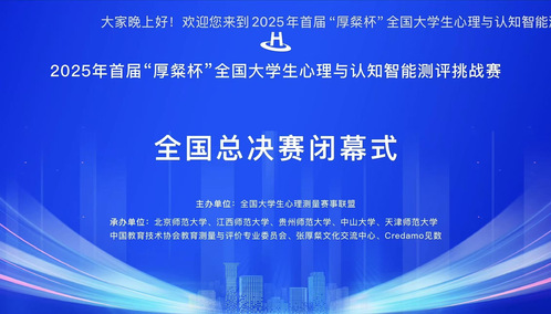 ”厚粲杯”由全国大学生心理测量赛事联盟主办,北京师范大学联合贵州师范大学、江西师范大学、天津师范大学、中山大学,以及中国教育技术协会教育测量与评价专业委员会、“Credamo见数”共同承办,并得到教育部高等学校心理学教学指导委员会、全国应用心理专业学位研究生教育指导委员会等多家单位的专业指导,是国内首个聚焦心理学与人工智能深度融合的专项赛事。大赛设置了“问卷”与“测验”双赛道,涵盖校级选拔、分赛区匿名评审与全国总决赛答辩等多个环节,最终进入总决赛答辩环节的队伍占比约为5%。