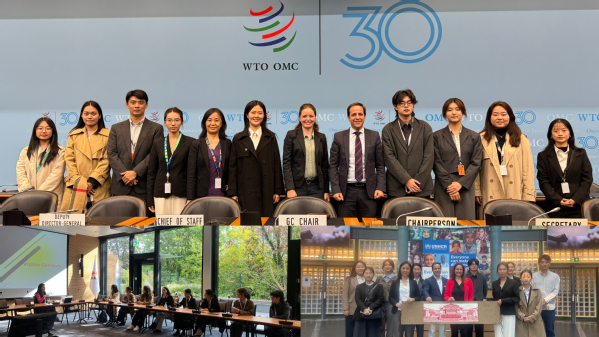 研学团队先后参访了7个国际组织,包括和平大学常驻联合国日内瓦办事处、联合国日内瓦办事处万国宫(UNOG)、世界贸易组织(WTO)、国际红十字会与红新月会联合会(IFRC)、联合国难民事务高级专员公署(UNHCR)、哥斯达黎加常驻联合国日内瓦办事处和全球希望网络国际日内瓦领导力和公共政策研究所。通过沉浸式参访与专业讲解,师生们深入了解了国际组织的架构设置、职能范围及议事规则,并围绕全球贸易治理的机遇与挑战、人道主义救援流程、难民权益保障政策以及WTO的运作方式与决策机制等展开了深度探讨。