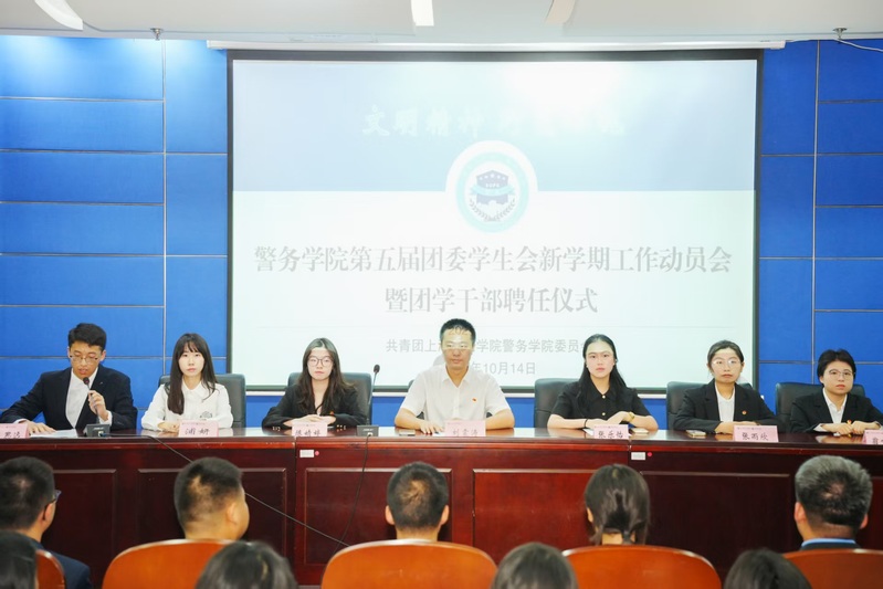 为进一步凝聚共识、明确目标,扎实推进新学期团学工作,2025年10月14日中午,警务学院在信教112教室召开第五届团委学生会新学期工作动员会暨团学干部聘任仪式。学院团委书记刘震涛与第五届团委学生会全体成员出席,会议由团委委员陈思远主持。