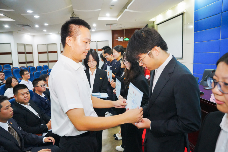 会议在庄严的中国共产主义青年团团歌中开幕。陈思远宣读了新一届团学干部名单,随后由刘震涛为获聘干部颁发聘书。
