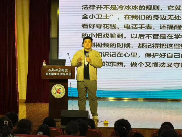 为深入推进大中小学思政教育一体化建设,将法治教育融入思政育人体系,不断提升思政引领力,2025年10月27日下午,上海政法学院人工智能法学院智远志愿服务队走进上海政法学院附属松江外国语学校(中学部),开展了“法多多”进校园普法宣讲活动。