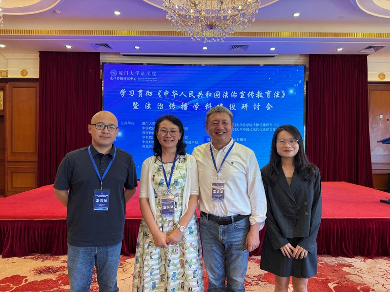 2025年10月25日,由厦门大学法学院联合《法治日报》社、中国政法大学光明新闻传播学院、西南政法大学新闻传播学院、华东政法大学韬奋新闻传播学院、中南财经政法大学新闻与文化传播学院、西北政法大学新闻传播学院共同主办“学习贯彻《中华人民共和国法治宣传教育法》暨法治传播学科建设研讨会”。上海纪录片学院专业教师应邀参与本次研讨会,并联合发起《法治传播发展厦门宣言》。