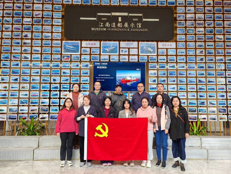 在江南造船厂讲解员的引导下,大家先后参观了大型船舶建造现场、江南造船展示馆等。通过珍贵的历史图片、实物模型、多媒体演示以及对现代化造船工艺流程的实地观摩,全体党员与教职工系统了解了江南造船厂从1865年创建至今160余年的发展历程。从近代中国工业的萌芽到如今成为中国船舶工业的骨干企业,从建造木质舰船到自主研发设计现代化舰船,江南造船厂的每一步跨越都凝聚着一代代造船人的智慧与汗水,生动诠释了“悬规植矩、器惟求新”的江南精神。