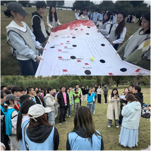 “同心协力·薪火相传”红色文化素质拓展活动将现场气氛推向高潮。各小组依次挑战“重走红色长征路”“破译敌人密电”“巧渡金沙江”等经典团队任务。队员们双手紧握、步伐一致“重走长征路”;群策群力、逻辑缜密“破译密电”;合理规划、协作互助“巧渡金沙江”。在欢声笑语与紧密协作中,同学们深刻体会到团队合作的力量与智慧,传承了不畏艰难、团结奋进的红色精神。