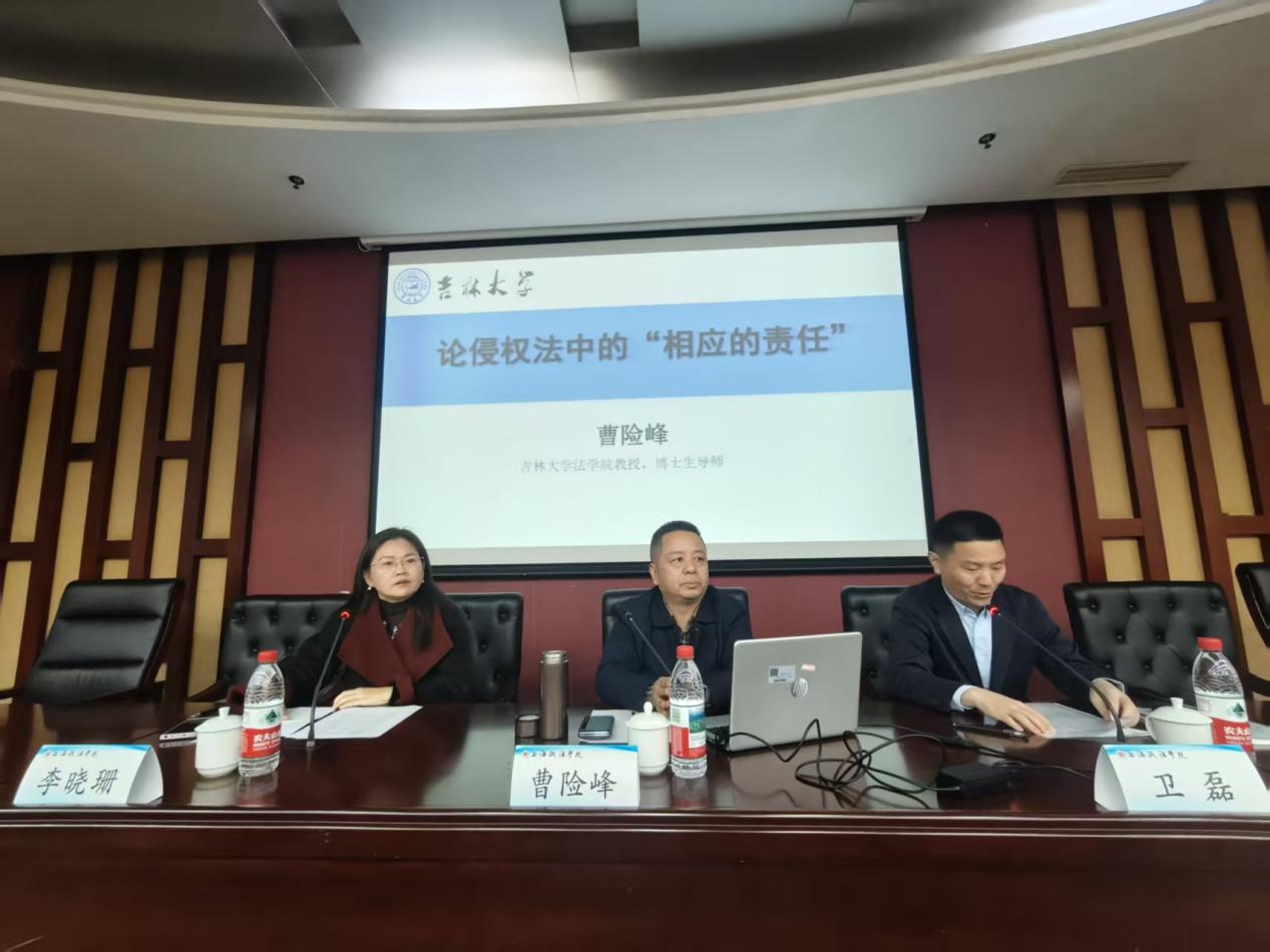 11月21日下午,上海政法学院“名家讲坛”系列的第250讲在汇知楼107会议室成功举办。吉林大学匡亚明学者、英才教授、博士生导师,《当代法学》主编曹险峰教授以“论侵权法中的‘相应的责任’”为题,为在场的师生们带来了一场引人入胜的学术演讲。讲座由上海政法学院上海司法研究所李晓珊副教授主持,上海政法学院研究生处处长卫磊教授致辞。