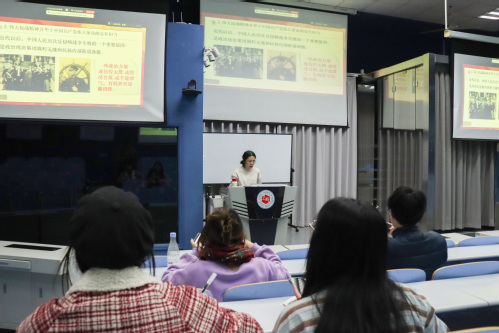 校党委组织部宋佳为学员们讲授本期培训班第一课《百年历程中的伟大精神》。她从新民主主义革命时期、社会主义革命和建设时期、改革开放和社会主义现代化建设新时期、中国特色社会主义新时代这四个时期的代表性精神出发,着重讲述了“红船精神”“抗美援朝精神”“载人航天精神”等不同时期精神背后所蕴含的象征意义、隐喻内涵和时代意蕴,生动展现了党在筚路蓝缕的创业期、艰苦奋斗的建设期、敢闯敢试的改革期和矢志复兴的新时代所特有的精神气质与价值追求。党课结尾,她号召与会青年要从党的百年历史中充分汲取力量,将不同时期的伟大精神于日常生活中学以致用,为实现中华民族伟大复兴中国梦贡献自己的一份绵薄之力。