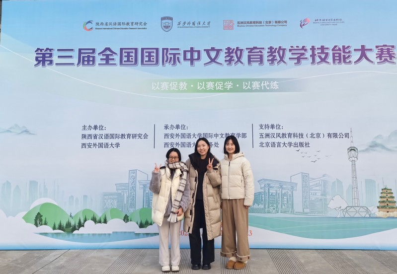 11月21日至23日,由陕西省汉语国际教育研究会与西安外国语大学主办、西安外国语大学国际中文教育学部与西安外国语大学教务处承办的“第三届全国国际中文教育教学技能大赛”成功举办。我校语言文化学院(国际交流学院)留学生教学教研室汤如阳老师带领2023级越南留学生杜庆河和2024级蒙古留学生心爱代表我校参赛,获大赛优秀奖。
