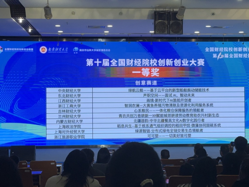 近日,由全国财经院校创新创业联盟主办、南京财经大学承办的“招商银行杯”第十届全国财经院校创新创业大赛成功举办。比赛共有中央财经大学、上海财经大学、西南财经大学等来自全国各大财经院校的90支晋级队伍齐聚一堂,通过项目路演和现场答辩的方式,进行了深入的项目交流与角逐。
