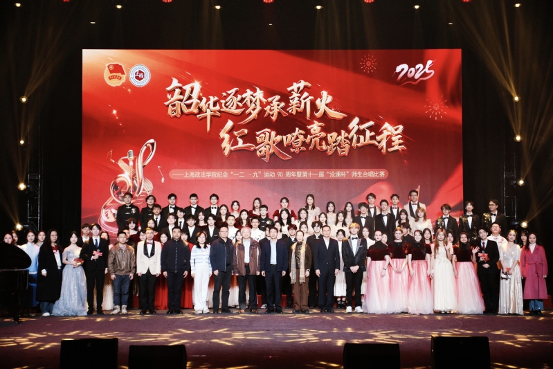 第三篇章“薪火赓续”,人工智能法学院以《不忘初心》唱出新时代青年的使命与担当;政府管理学院用《铭记》再一次凝聚对历史的庄重致敬;警务学院(司法鉴定学院)用《如愿》表达对盛世中华的深情告白;语言文化学院(国际交流学院)的《有我》以青春之声发出“强国有我”的铿锵誓言。活动尾声,由上海政法学院留学生代表倾情献唱《喀秋莎》,不同肤色、不同语言的青年用真挚歌声唱响和平与友谊,也为整场歌会画上圆满句号。