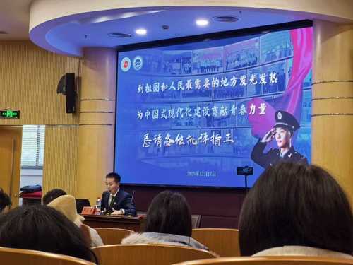 本次系列活动中,警务学院(司法鉴定学院)分团委书记刘震涛以“携笔从戎,不负韶华——在祖国最需要的地方书写青春答卷”为题,为上海师范大学人文学院2025级学子开展专题讲座。他系统回顾了自身从求学、参军到从事教育及参与抗疫服务的经历,并结合奋斗、担当、家国、传承等主题阐述了个人体会,鼓励学子将个人理想融入时代需求,在祖国和人民需要的地方贡献青春力量,为在场学生上了一堂鲜活深刻的思想启迪课。