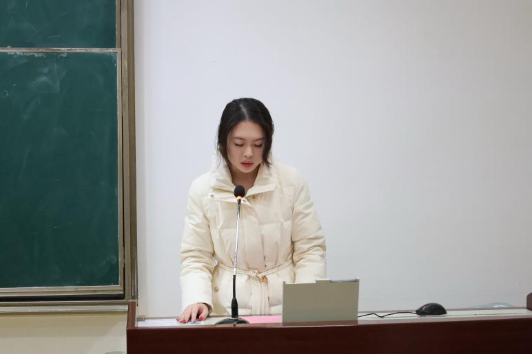经济管理学院经济24231班曹赟同学作为学员代表发言,她表示各位学员要以饱满热情投入学习,认真听讲、深入研讨,积极分享交流,做到学思用贯通,在校勤学善思,在社会服务奉献,以知行合一诠释对党忠诚。