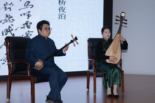 苏州评弹是陈云同志毕生挚爱,既是国家级非物质文化遗产的瑰宝,更是传递红色精神的独特载体。活动现场,马搏远老师为党员们普及评弹知识,详解单档、双档、三档等演出形式,介绍三弦、琵琶的伴奏特色,阐释“说、噱、弹、唱、演”五位一体的艺术精髓,让大家对这门江南曲艺形成系统认知。随后,马搏远与陈喆缨老师搭档登台献艺:《声声慢》婉转悠扬,勾勒出诗情画意的江南景致;《枫桥夜泊》韵味醇厚,重现千古名篇的经典意蕴;专为陈云同志创作的叙事评弹《云老三唱》扣人心弦,以细腻唱腔与生动叙事,串联起他投身革命、建设国家、关怀文艺的壮阔人生。弦索叮咚间,红色故事缓缓流淌,现场党员沉浸式感受非遗文化魅力与革命先辈精神伟力,实现了传统艺术与红色教育的深度交融。