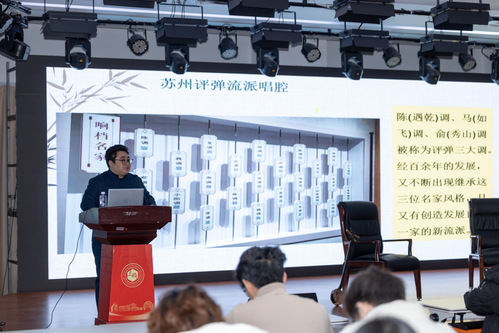 为创新党员教育形式、丰富思政教育内涵,让“场馆里的思政课”入脑入心,12月21日下午,学(研)工部(处)在成德楼四楼多功能厅举办“活力上海——场馆里的思政课之评弹党课进校园”主题活动。活动特邀陈云纪念馆马搏远、陈喆缨两位老师授课,来自各二级学院的110余名学生党员代表齐聚一堂,在吴侬软语与弦索雅韵中感悟红色初心、汲取奋进力量。