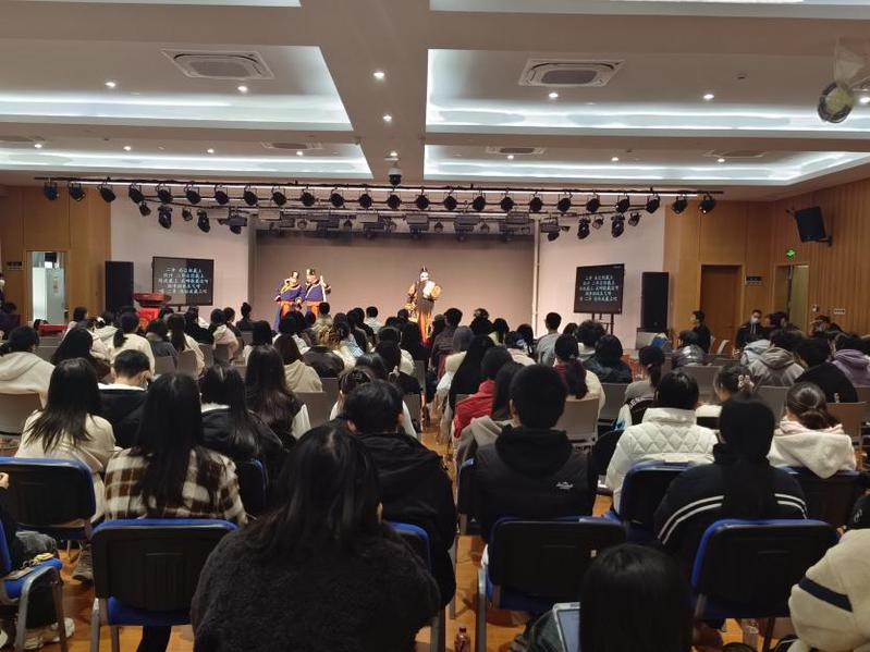 为了坚定青年学子的文化自信,推动中华优秀传统文化在新时代的传承中生生不息、历久弥新,语言文化学院(国际交流学院)于2025年12月19日联合上海京剧院举办了“高雅艺术进校园”系列活动。上京优秀青年演员带来《赤桑镇》《三岔口》两折精彩演出,收获了台下观众的连连喝彩。