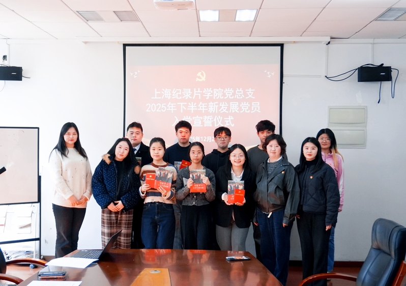 12月29日中午,上海纪录片学院(法治宣传教育学院)在A5-103会议室顺利举办了2025年下半年新发展党员入党宣誓仪式。学院党总支副书记朱慧博,学生党支部书记杨鸿涛、张勤勤以及下半年全体新发展党员参加。仪式由赖洁珊主持。
