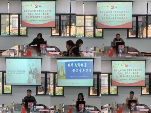 为深入学习贯彻党的二十大精神、全面落实新时代党的建设总要求、压实基层党建工作责任,1月6日上午,语言文化学院(国际交流学院)党总支在A1-101召开学院党总支(扩大)会议暨党支部书记述职评议考核会。学院领导班子成员、党总支委员、各党支部书记、师生党员代表、民主党派及无党派人士代表出席会议,校党委组织部代表列席指导。会议由学院党总支副书记(主持工作)周怡主持。