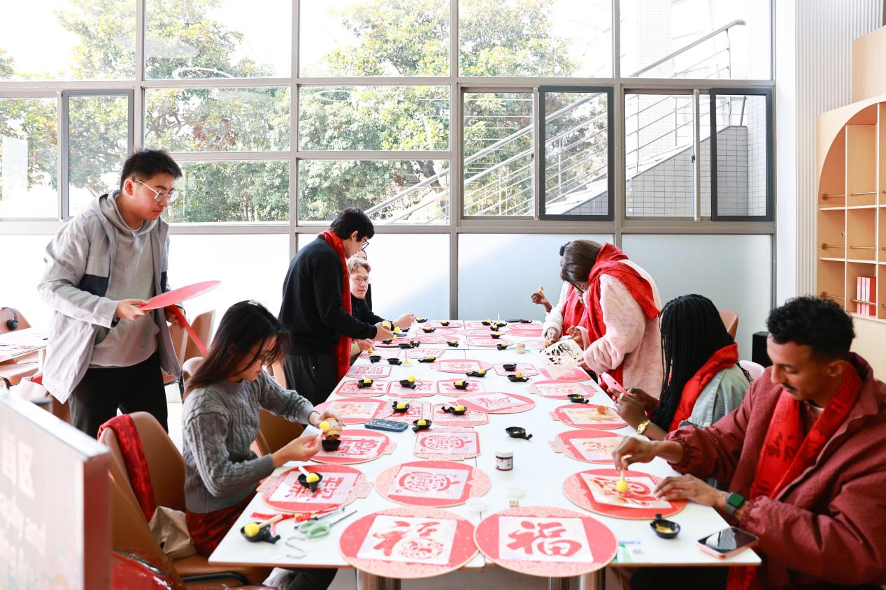 团圆宴仪式现场,留校学生带来了精彩的歌舞和诗朗诵等文艺表演,诉说着在上政的团圆与温暖,打动了现场每一个人。大家热情地参与“非遗烙画进校园”活动,跟着佘山镇非遗传人现场学习、亲手体验烙画技艺,在火与木的交融中感受中华传统文化的匠心与魅力。师生一起迎新春写春联、拓“福”字、包饺子,大家挥毫泼墨,将新春期许凝于红纸春联,把天南海北的思念与牵挂拓进祝福中,欢声笑语间,满是团圆的温馨。