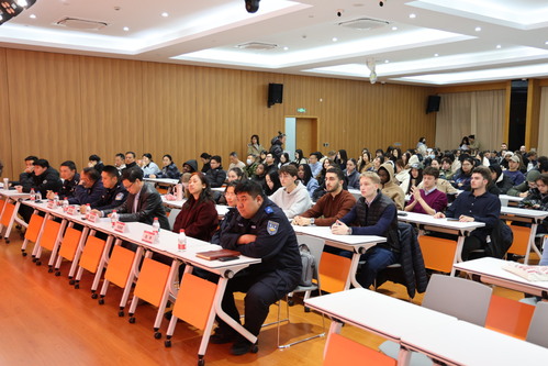 讲座期间,学校也对全体中外学生同学提出了新学期的期望与建议:一是尽快调整状态,遵守教学纪律,专注学业;二是时刻绷紧安全弦,注意人身、财产、交通及住宿安全;三是积极融入校园,参与文化交流,广结友谊。