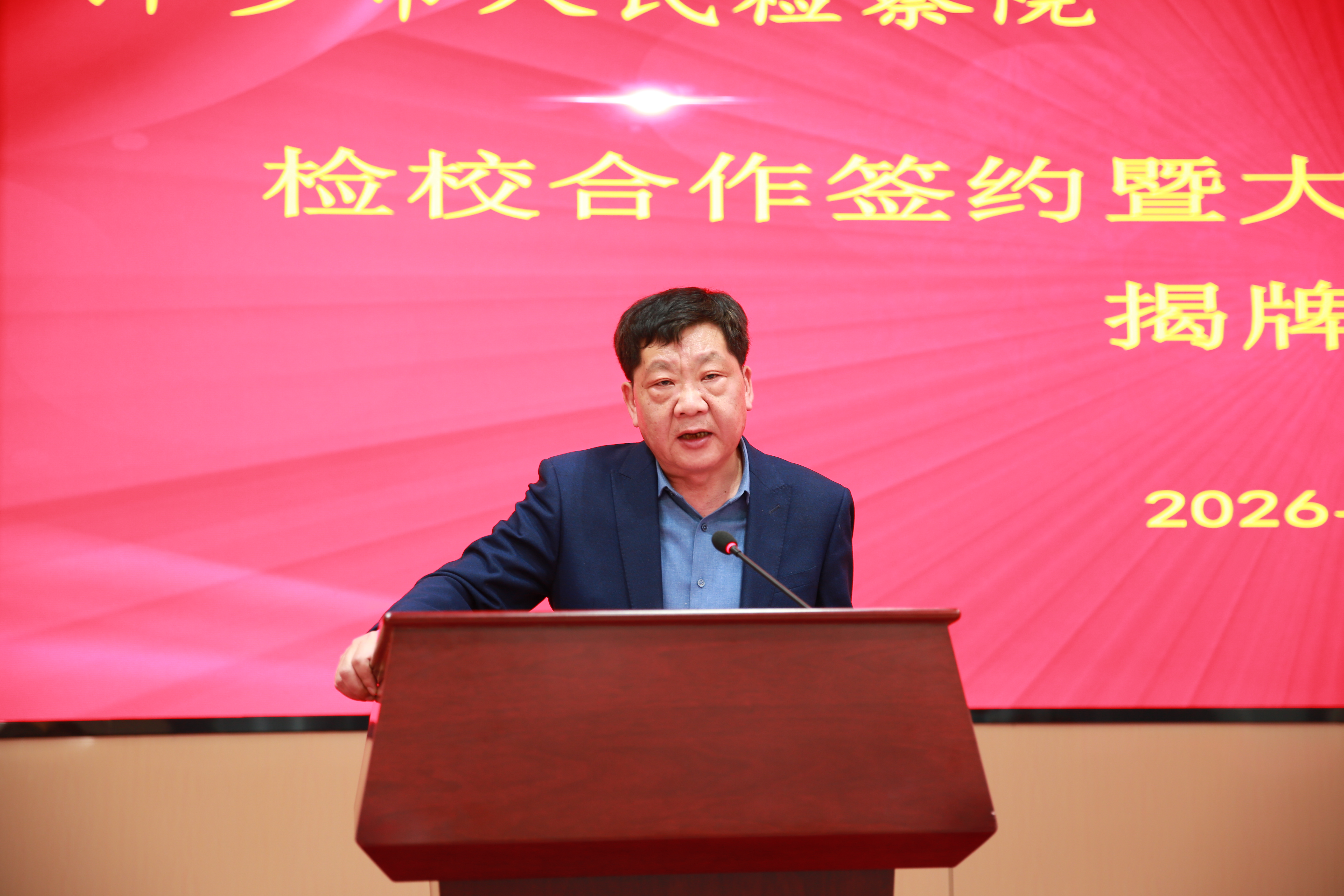 郑少华在致辞中,对萍乡市委、市政府及萍乡市人民检察院给予学校发展的关心支持表示感谢,他介绍了上海政法学院的办学历史、学科建设、专业特色和办学成果。郑少华表示,萍乡是红色圣地更是法治建设实践热土,早期共产党人在安源开展的工运实践与红色司法探索,为新时代法治建设积淀了宝贵的红色基因,萍乡市人民检察院在司法办案、基层治理等方面积累的丰富实务经验,为法学教育提供了鲜活样本。此次双方携手合作,是贯彻落实全面依法治国、科教兴国战略的具体行动,更是高校学术资源与检察实务力量的双向奔赴。郑少华还从打造法治人才培养、搭建法学理论与检察实务、凝聚检校合作发展等三个方面,描绘了双方合作愿景,期待以此次合作为契机,推动人才共育、理论共研、资源共享、党建共融,真正实现法学理论研究与司法检察实践的良性互动、成果共享。