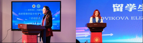 在学生代表发言环节,来自政管24371班的刘月恒表达了对文明互鉴的热忱,她呼吁大家以开放包容的心态,在交流中成为当代中国故事的生动讲述者,在互动中搭建真诚友谊的桥梁。来自俄罗斯的NOVIKOVA ELIZAVETA(柯丽丽)分享了自己初到中国时从陌生到逐渐融入的心路历程,她说道:“我期待通过政策研讨、文化体验和语言互助,与同学们共同探索真实、立体的中国。”
