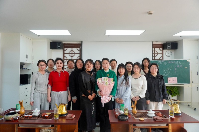 课程尾声,国际中文教育专业的硕士生代表以标准的“举案齐眉”礼向方茵老师献上鲜花与节日祝福,目光平视,双手奉持,将两日所学内化为一次真诚、典雅的文化表达。方老师倍感欣慰,她寄语学员:“茶礼的精髓在于发自内心的尊重与恰到好处的表达。希望你们未来无论站在讲台还是外交场合,都能保有这份从容与恭敬,成为中华文化合格的诠释者与传译者。”