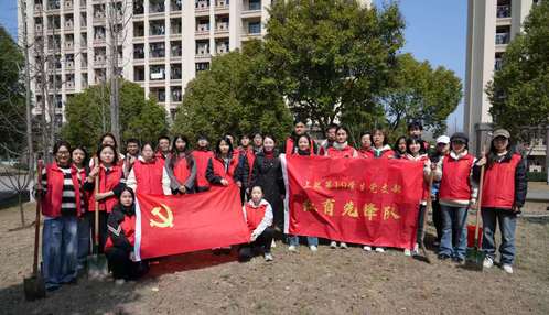 活动现场党旗高高飘扬,上海政法学院第19学生党支部的学生党员们热情饱满、主动担当,在后勤保障处负责老师的专业指导下,积极投身活动全过程。大家分工协作、默契配合,经过共同努力,一排排新栽的树苗挺拔而立、迎风舒展,不仅为校园增添了一抹春日生机与绿意,更让全体参与人员在实践中真切感悟到共建共享的深刻意义。