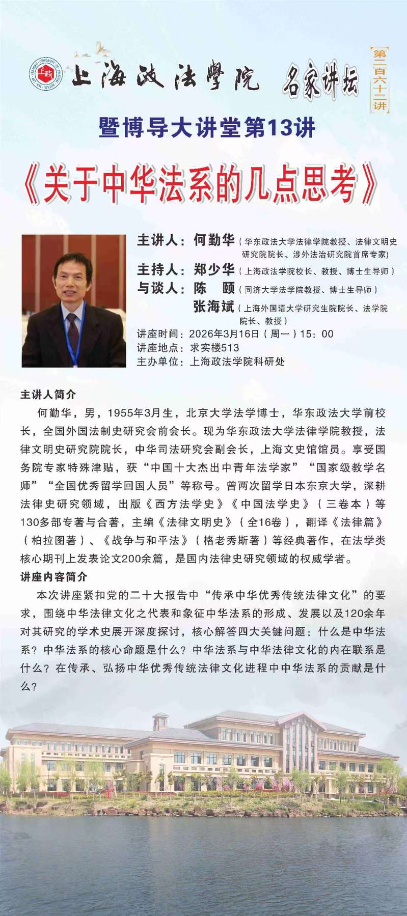 【名家讲坛第262讲暨博导大讲堂13讲:华东政法大学何勤华教授:关于中华法系的几点思考】