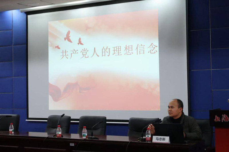教工经济学党支部书记马忠新作《共产党人的理想信念》专题讲授,阐释理想信念是共产党人精神上的“钙”,鼓励学员坚定“四个自信”、做到“两个维护”,筑牢信仰之基,践行党员责任。
