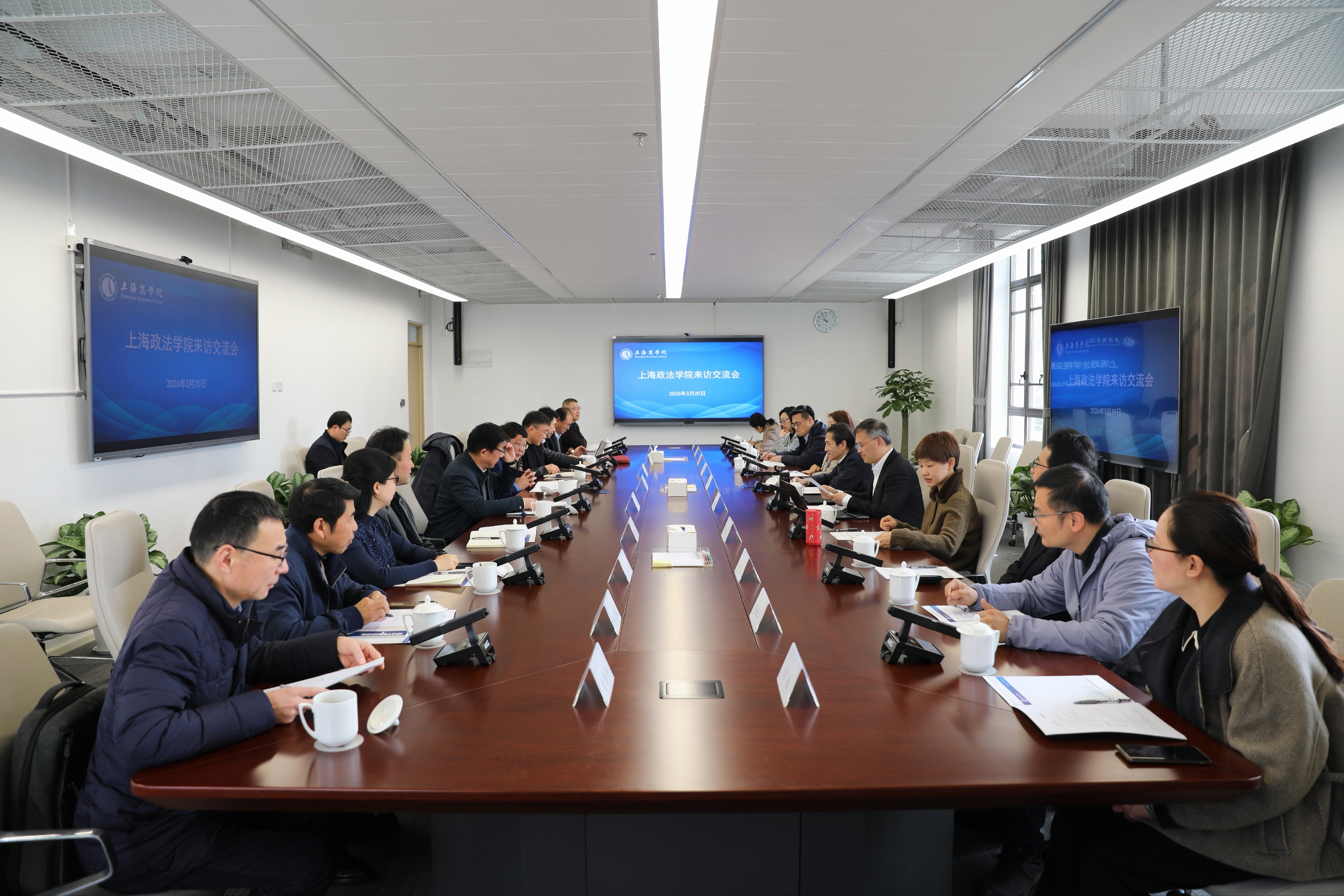 3月20日上午,校长郑少华、副校长罗立刚一行赴上海商学院走访调研。上海商学院校长吴忠、副校长张绍华热情接待了郑少华校长一行,双方围绕“十五五”发展规划、教学科研、社会培训等工作进行了深入交流。