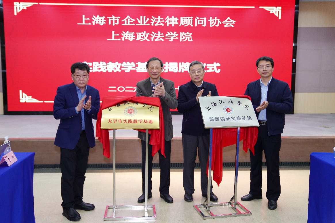 在全场共同见证下,上海政法学院与上海市企业法律顾问协会双方代表正式签署合作协议,并共同为上海政法学院大学生实践教学基地、上海政法学院创新创业实践基地揭牌,标志着双方的合作迈入实质性推进阶段,为后续各项合作举措的落地实施筑牢基础。