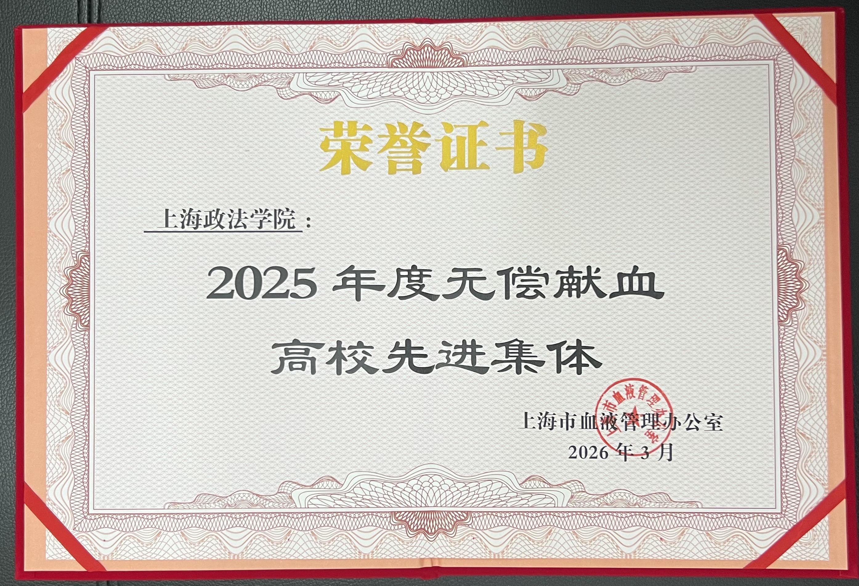 近日,学校荣获市2025年度无偿献血高校先进集体荣誉称号,这一荣誉彰显了学校师生的爱心和担当,诠释了上政人无私奉献、救死扶伤的崇高品德,体现了学校师生浓厚的社会责任担当和热心公益的高尚情怀。