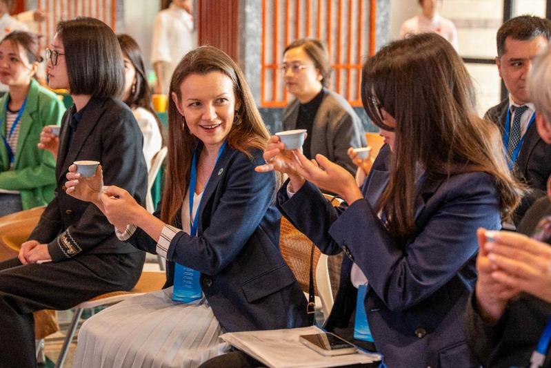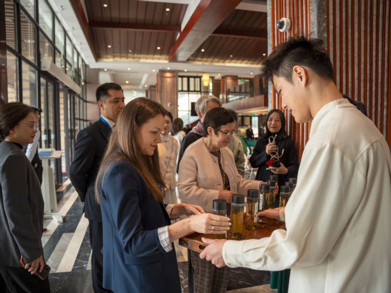 活动尾声,外宾们收到了由师生们提前亲手制作的瓶装白桃乌龙茶,这份凝聚心意的伴手礼令国际友人深感温暖。一位来自上合组织秘书处的代表表示,通过此次沉浸式体验,不仅深切体会到中国茶文化的博大精深,更深刻感受到中国青年的热情与专业。