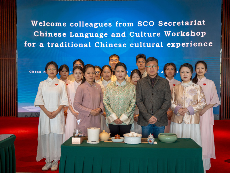 3月22日,上海合作组织秘书处中国语言文化研修班代表团到访中国—上海合作组织国际司法交流合作培训基地(以下简称“中国—上合司法培训基地”),参与中国传统文化体验活动。语言文化学院(国际交流学院)朴归茶道社国宾茶礼仪队负责本次活动的茶事服务与礼仪展示工作,凭借专业的茶艺技艺与规范的礼宾礼仪,为国际友人呈献了一场高雅别致的文化盛宴。