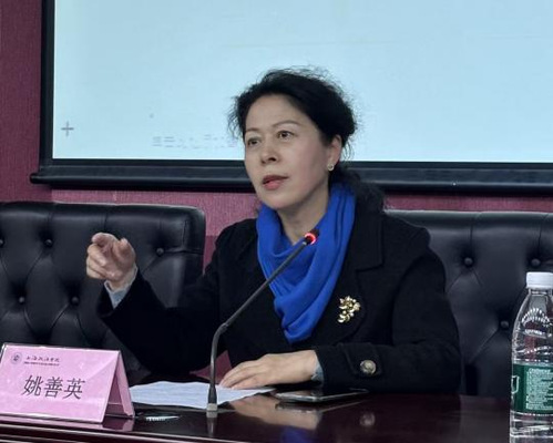 会上,姚善英代表学院对Adam Tyson一行的到来表示热烈欢迎,简要回顾了我院与利兹大学多年来的合作历程,肯定了双方合作项目在人才培养、学术交流方面取得的显著成效,并鼓励在场学生把握国际交流机会,拓宽学术视野、提升综合素养,为未来发展奠定坚实基础。