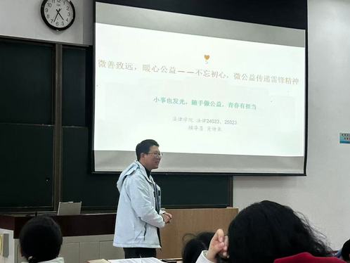 法律学院(调解学院)紧扣“雷锋精神”与民商法专业特质,以观看《公益律师的一天》为切入点,深刻诠释雷锋精神的职业表达,将无私奉献、责任担当、诚信友善的核心内涵,与《中华人民共和国民法典》诚信原则、社会责任条款及法律职业伦理有机贯通。班会以具象化实践引导学生将雷锋精神内化为法律人的职业遵循,围绕“法律人践行雷锋精神是否与职业利益、当事人权益相冲突”议题开展分组辩论,进一步强化价值引领,帮助学生树立正确职业观与价值观。