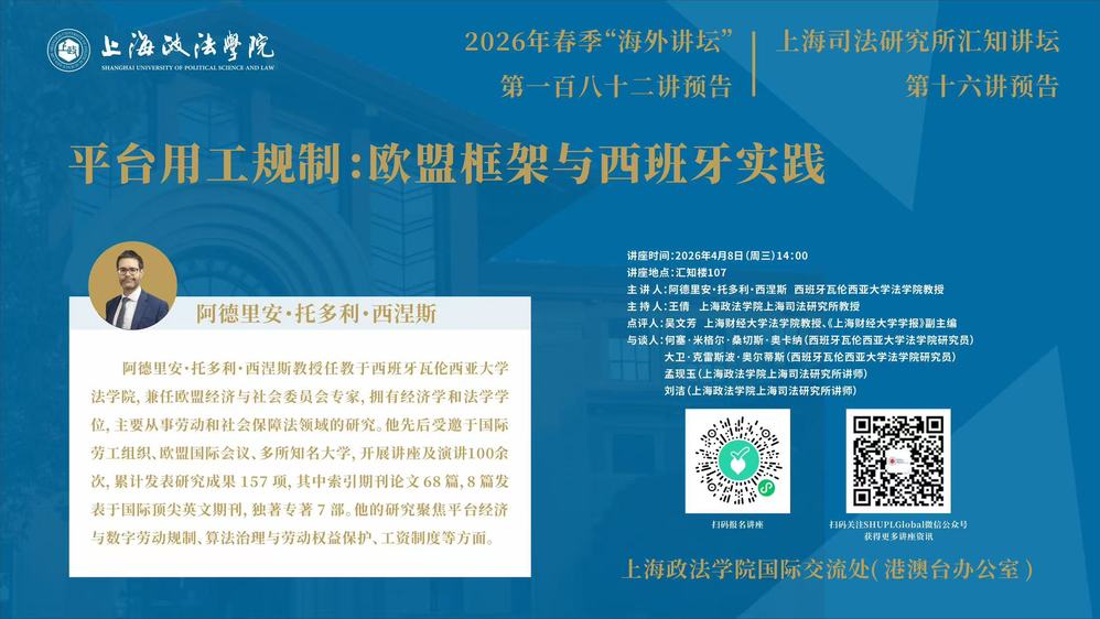 【海外讲坛第182讲】平台用工规则:欧盟框架与西班牙实践