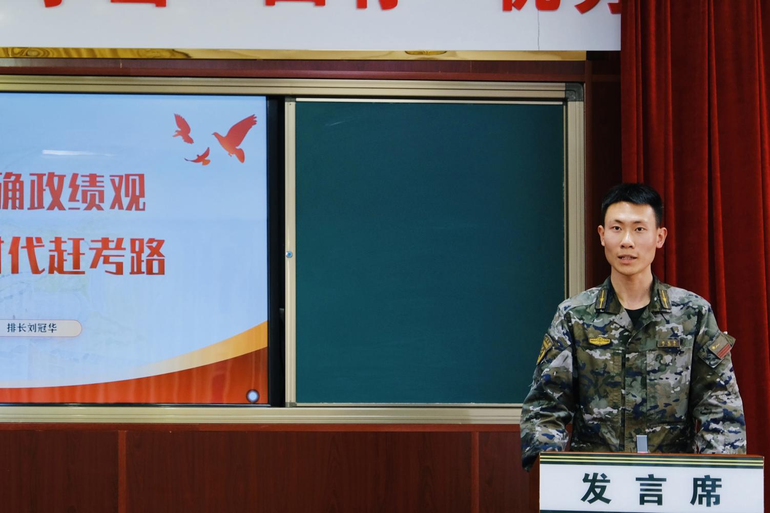 刘冠华以“树立和践行正确政绩观走好新时代的赶考路”为题进行专题授课。他带领大家重温了习近平总书记关于树立和践行正确政绩观的重要论述,并结合自身军旅经历与中队实际,通过生动案例阐释了“功成不必在我,功成必定有我”的奉献精神,让专题党课的教育意义更加凸显。