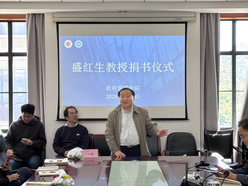 会上举行了盛红生教授捐书仪式。盛红生向学院天马图书馆捐赠了整套《读书》杂志及书籍,共计三百余本。盛红生深情回顾了与政府管理学院的深厚情缘。汪伟民感谢盛红生的慷慨赠书并为其颁发了荣誉证书,他勉励青年教师要学习盛教授严谨的治学精神和诲人不倦的育人品格。