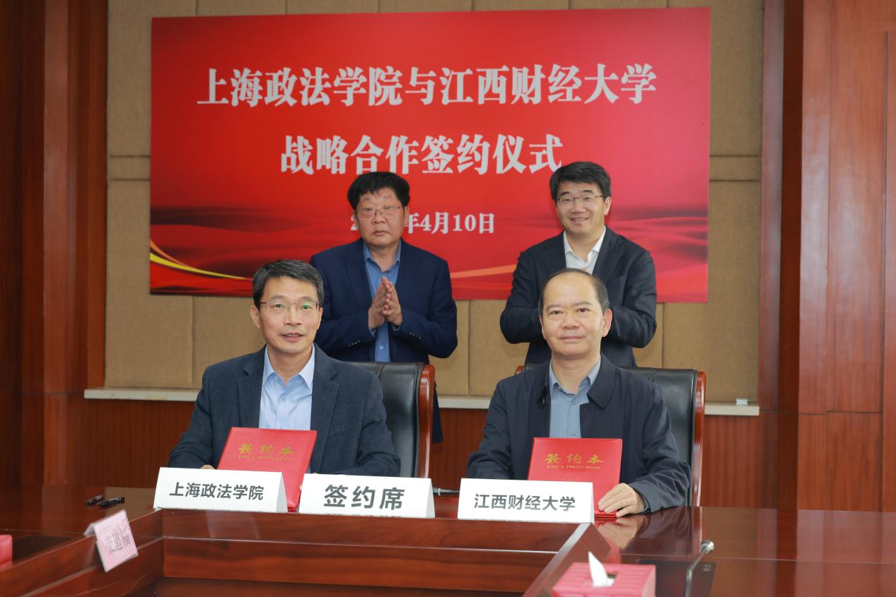 4月10日下午,上海政法学院与江西财经大学战略合作签约仪式在我校求实楼413会议室举行。上海政法学院校长郑少华,江西财经大学校长邓辉,党委常委、副校长李春根出席签约仪式。上海政法学院党委副书记、副校长高志刚主持会议。