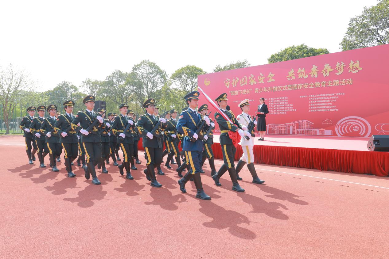 4月15日,在第十一个全民国家安全教育日到来之际,为深入学习贯彻习近平总书记关于国家安全的重要论述,全面践行总体国家安全观,贯通大中小学国家安全教育链条,引导广大青少年坚定国家安全理念、强化安全责任担当,以青春挺膺担当守护国家安全、共筑强国之基,“守护国家安全,共筑青春梦想”——“国旗下成长”青少年升旗仪式暨国家安全教育主题活动在上海政法学院田径场举行。