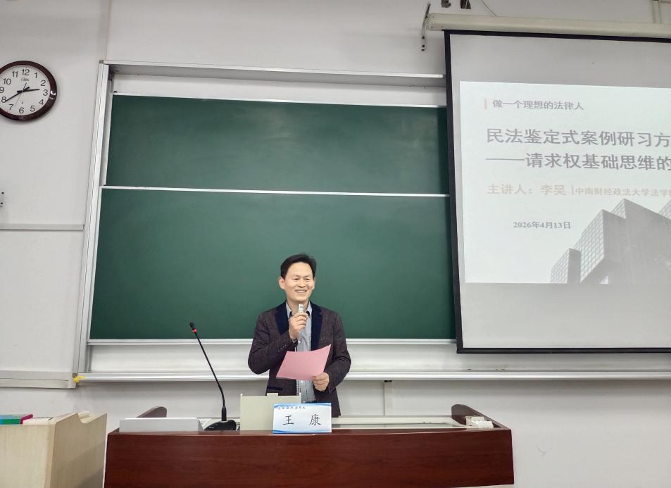 最后,王康对本次讲座作总结。他表示,李昊的报告体系完整、逻辑严密、深入浅出,系统呈现了民法鉴定式案例分析与请求权基础思维的完整框架,兼具理论深度、方法精度与实践指导意义,为我校法学教学改革、案例研习推广提供了重要参考。他希望同学们以本次讲座为契机,认真吸收、勤于练习,将规范严谨的法律方法论内化为专业素养与职业能力,努力成长为高素质法治人才。