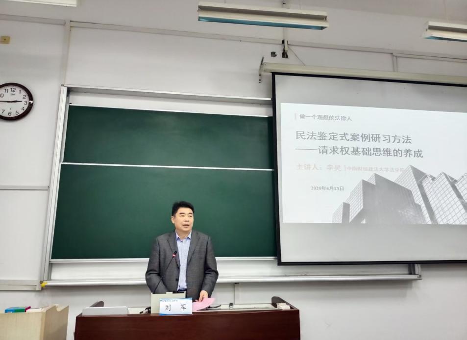 讲座伊始,刘军对李昊的到来表示热烈欢迎与衷心感谢。他指出,在全面推进依法治国与民法典深入实施的背景下,体系化、规范化的法律思维与案例分析能力,已成为法学人才培养的核心目标。民法鉴定式案例分析与请求权基础方法,是连接民法规范与司法实践、训练法律逻辑、提升裁判能力的关键工具,对强化法学教育、培养高素质法治人才具有重要意义。刘军介绍了李昊教授在民法学、数字法治及鉴定式案例研究领域的深厚造诣与丰硕成果,并期待本场讲座为广大师生带来深刻的学术启发。