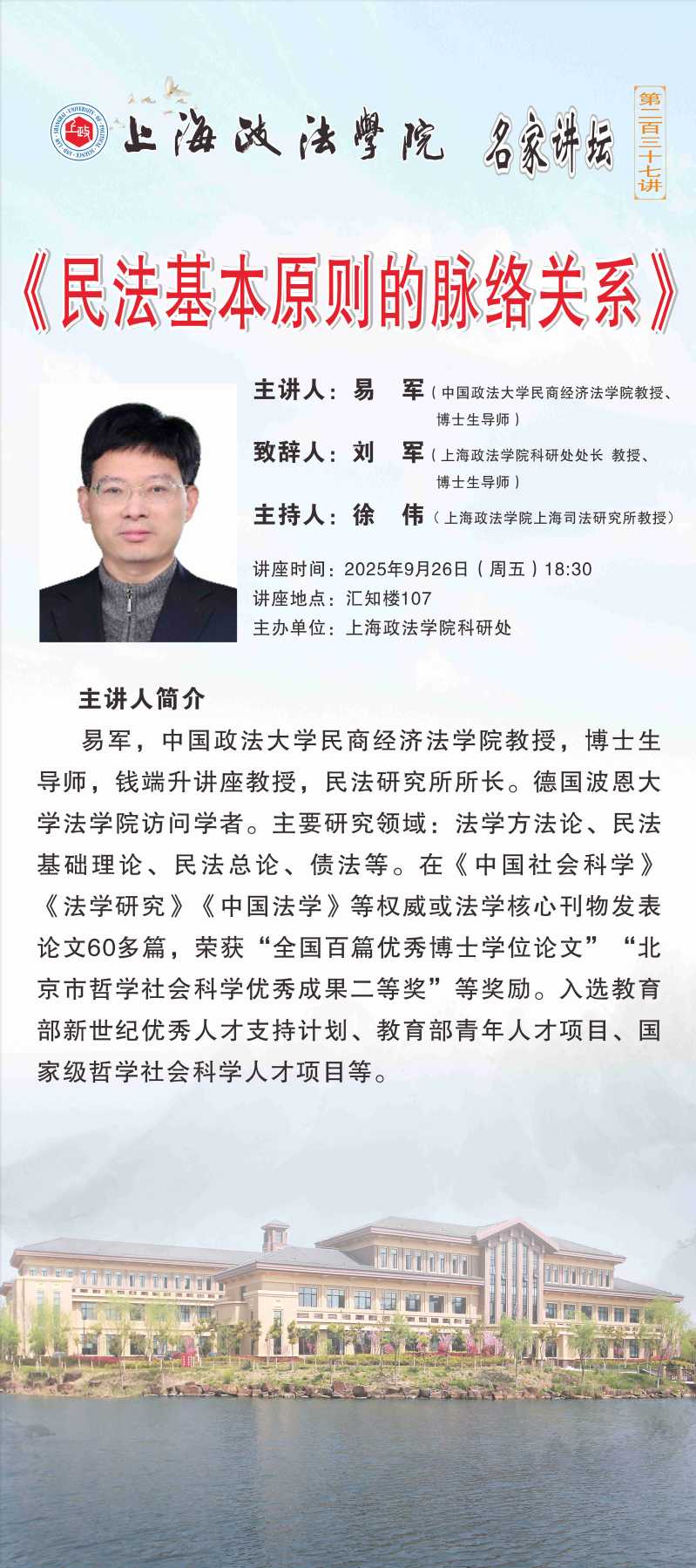 【名家讲坛第237讲】中国政法大学易军教授:民法基本原则的脉络关系