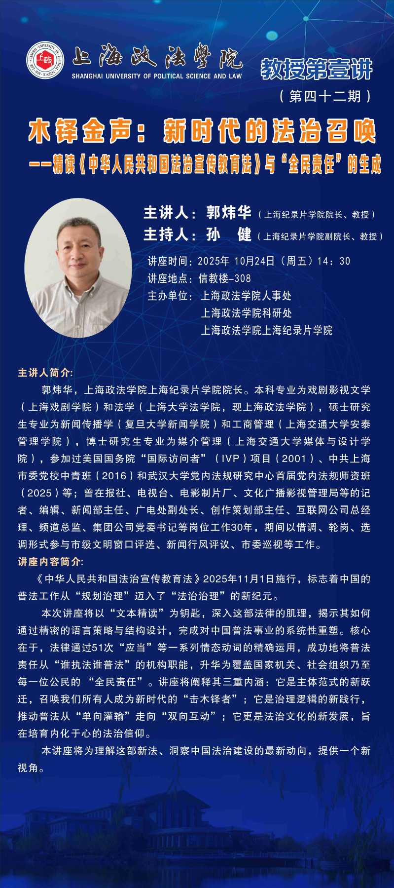 【教授第壹讲 第42期】纪录片学院郭炜华教授:水铎金声:新时代的法治召唤-精读《中华人民共和国法治宣传教育法》与“全民责任”的生成