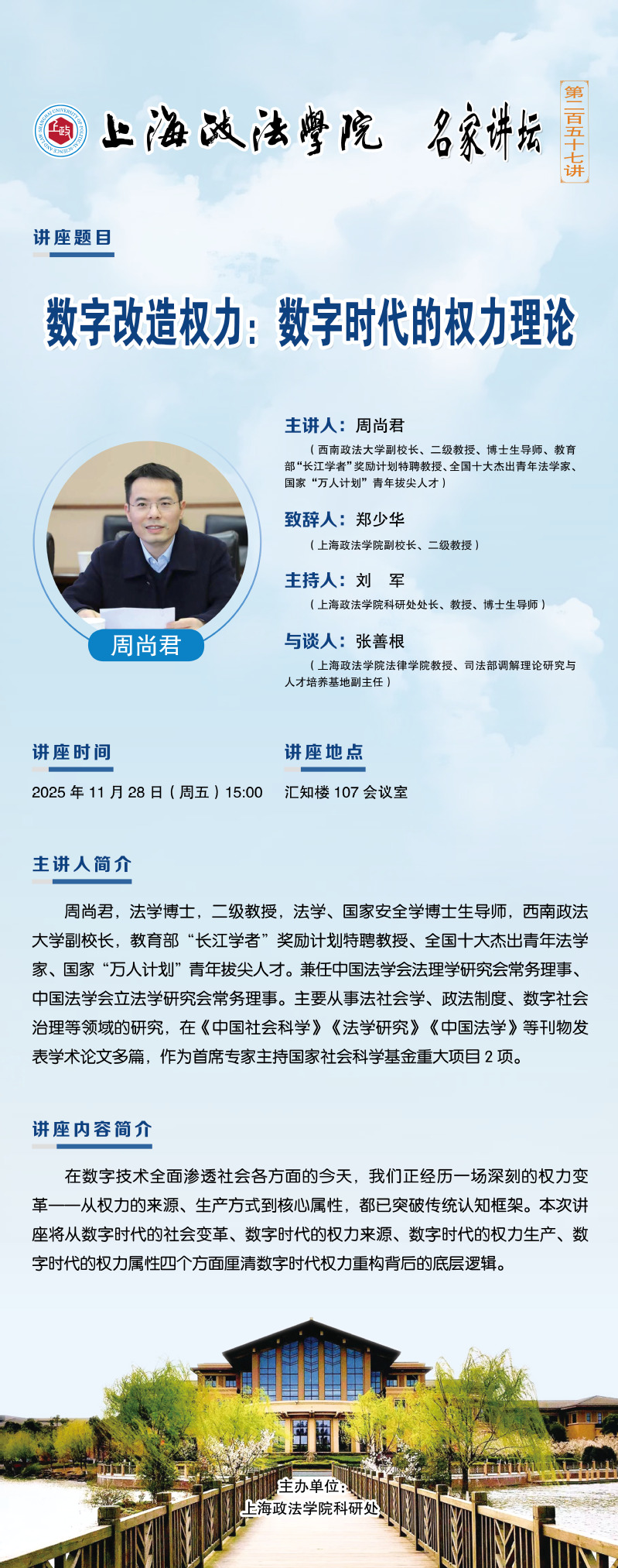 【名家讲坛第257讲】西南政法大学副校长周尚君教授:数字改造权力:数字时代的权力理论